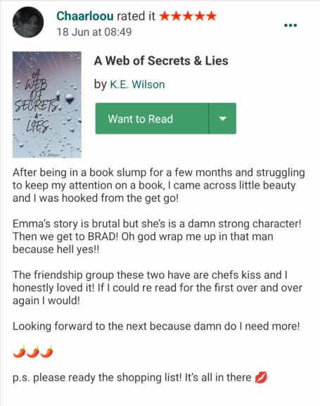 This does conclude Brad and Emma's story so please read A Web of Secrets & Lies first.