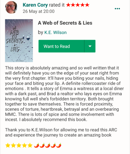 She's always had a passion for writing and with the encouragement from her husband she has finally had the courage to write and publish her first book 'A Web of Secrets & Lies'.